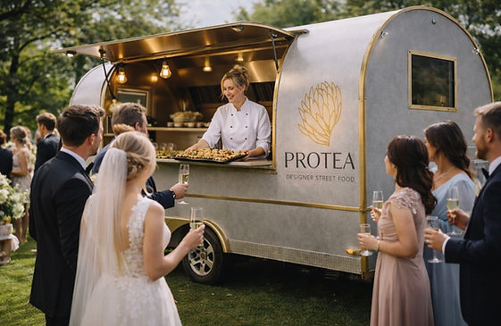 Protea is a fully equipped, mobile kitchen. Our beautiful trailer brings its own elegance to your event. Our staff look smart, are professional and bring their own warmth to your guests. We offer bespoke menus and a fresh, modern, seasonal canapé menu that is sure to wow your crowd.